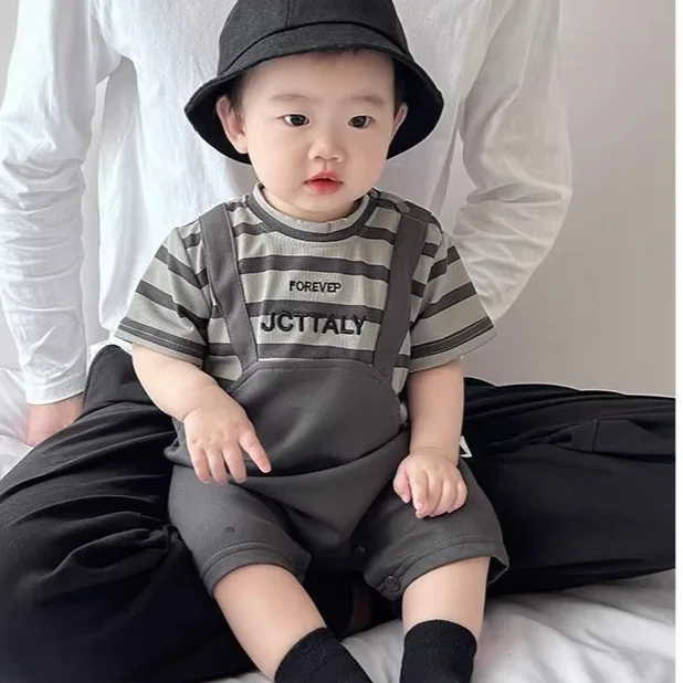 Somenie Body de manga corta de verano para bebés, traje de tela fina con efecto de dos piezas para bebés de 0 a 18 meses