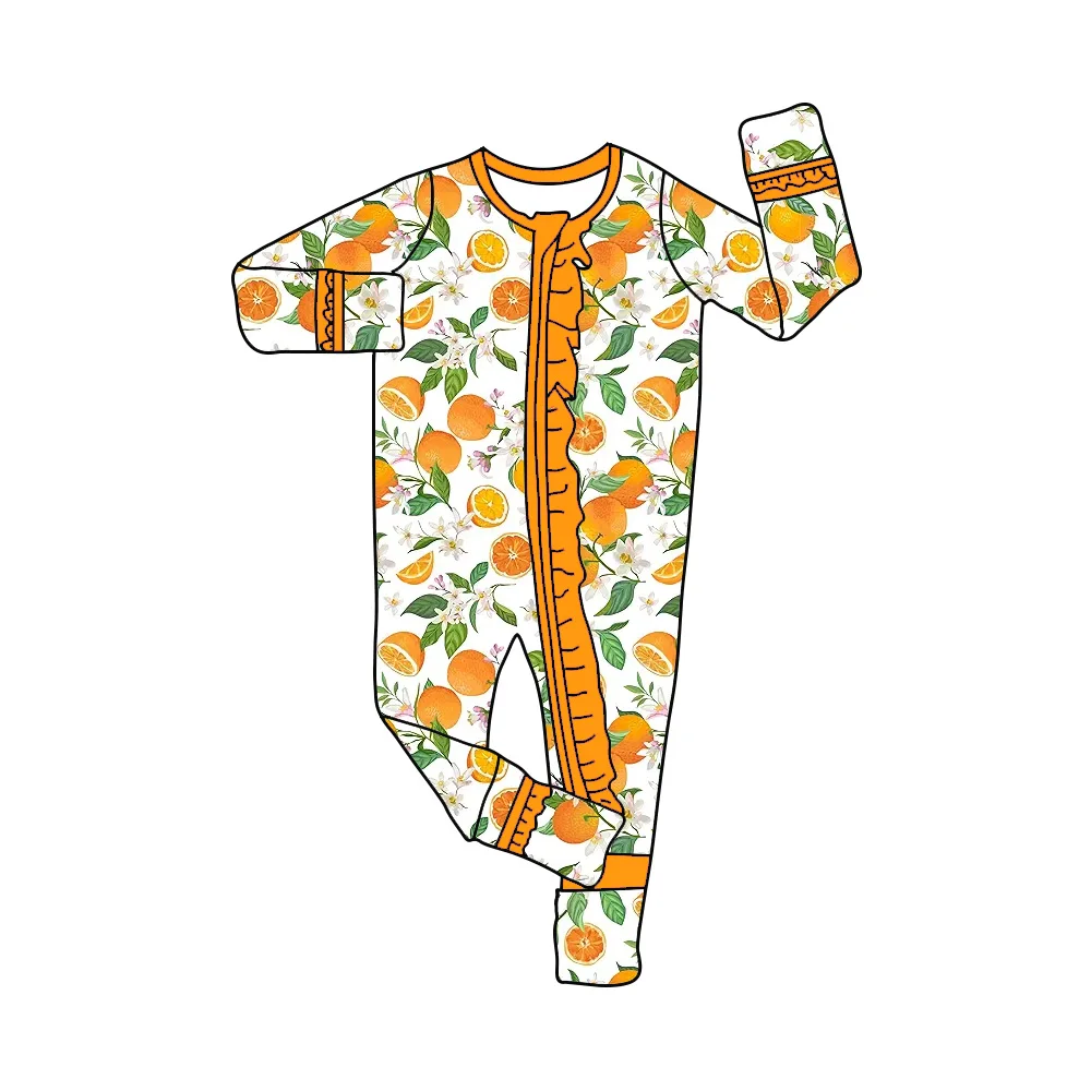 Nueva boutique, traje para niños, mono para bebé con estampado floral de frutas, mono de manga larga con cremallera, ropa para niñas y niños