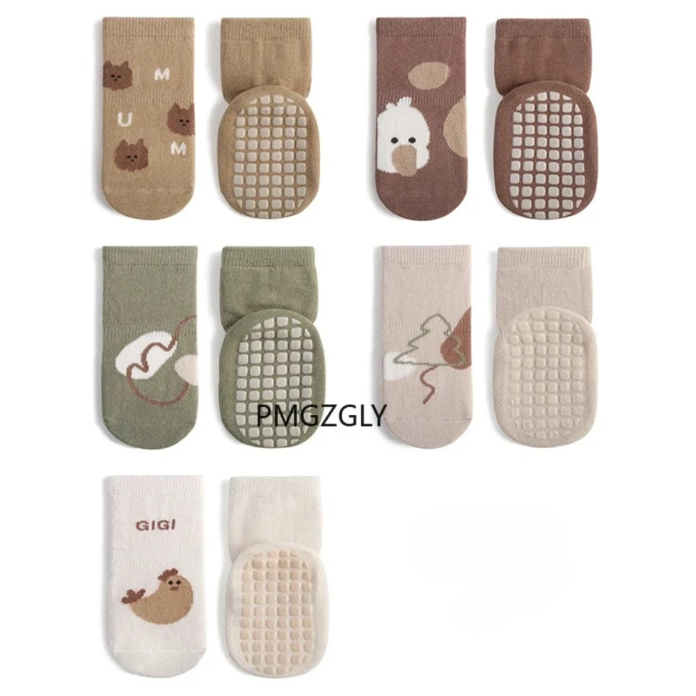 3/5 pares de calcetines antideslizantes con diseño de animales adorables para bebés, calcetines casuales transpirables para niños y niñas, actividades en interiores