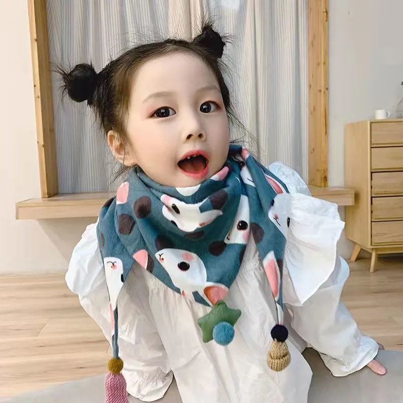 2025 bufanda triangular para niñas, chal para niños de primavera e invierno, pañuelo cálido a prueba de viento, bufandas bonitas con pompón para niños
