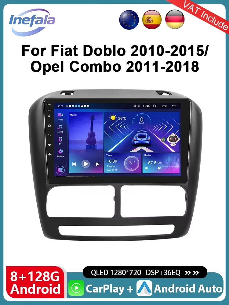 Podofo 4G CarPlay Android Radio para Fiat Doblo 2010-2015 Opel Combo 2011-2018 reproductor Multimedia 2din GPS unidad principal Autoradio RDS