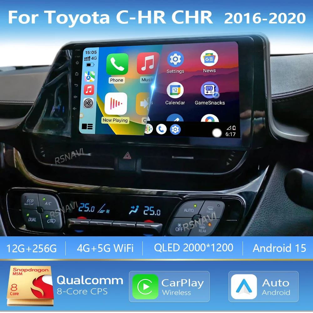 Android 15 Carplay Auto pantalla Radio reproductor Multimedia para Toyota C-HR CHR 2016-2020 controlador de mano derecha estéreo 2din unidad principal