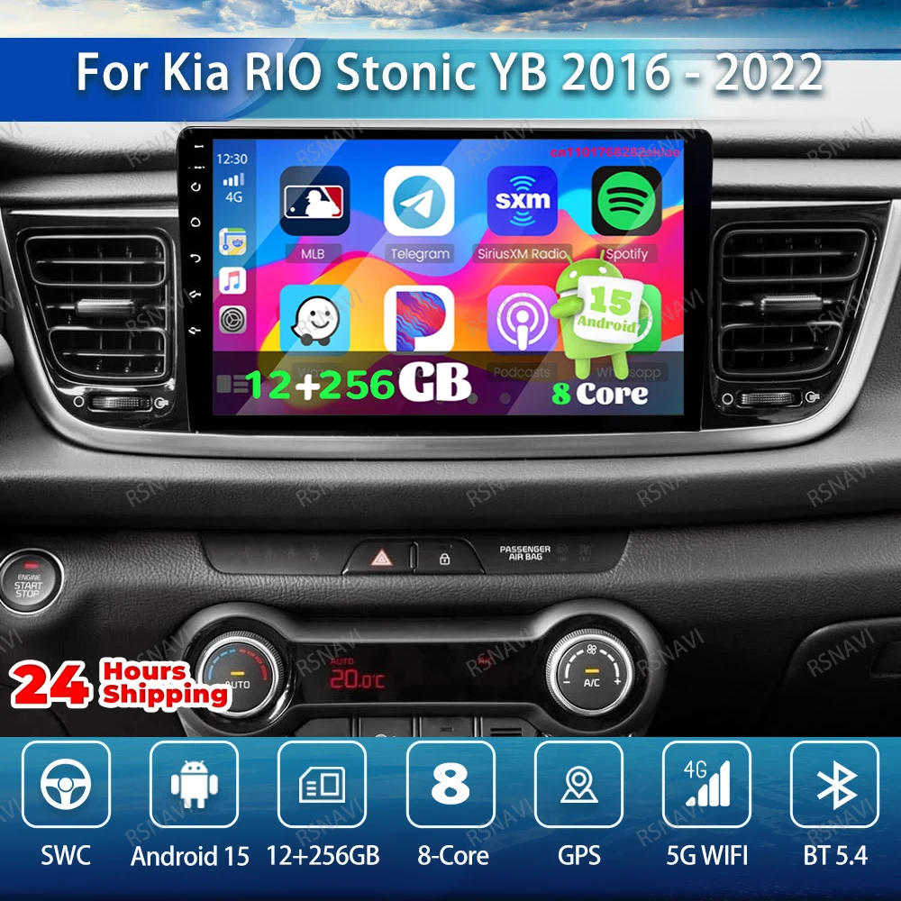 Android 15 Radio del coche para Kia RIO Stonic YB 2016 2017-2022 Qualcomm unidad principal de navegación estéreo WIFI + 4G DVD QLED inalámbrico BT AUTO