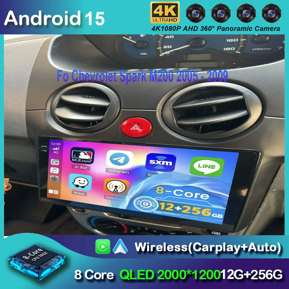 Android 15 Radio del coche para Chevrolet Spark M200 2005 - 2009 reproductor Multimedia navegación 4G unidad principal Carplay inalámbrica estéreo automático