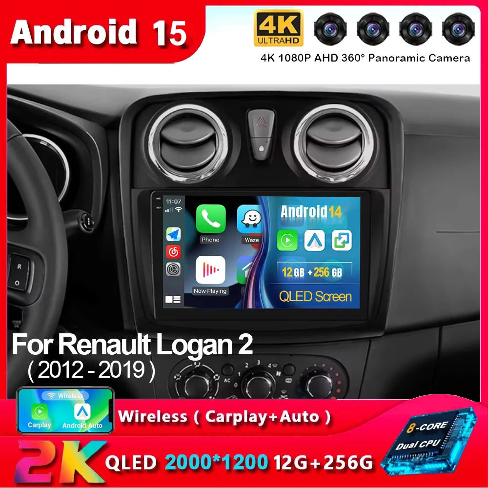 Android 15 Radio del coche para Renault Logan 2 2012 - 2019 Sandero 2 2014 - 2019 navegación Multimedia Carplay DVD unidad principal NO 2 Din