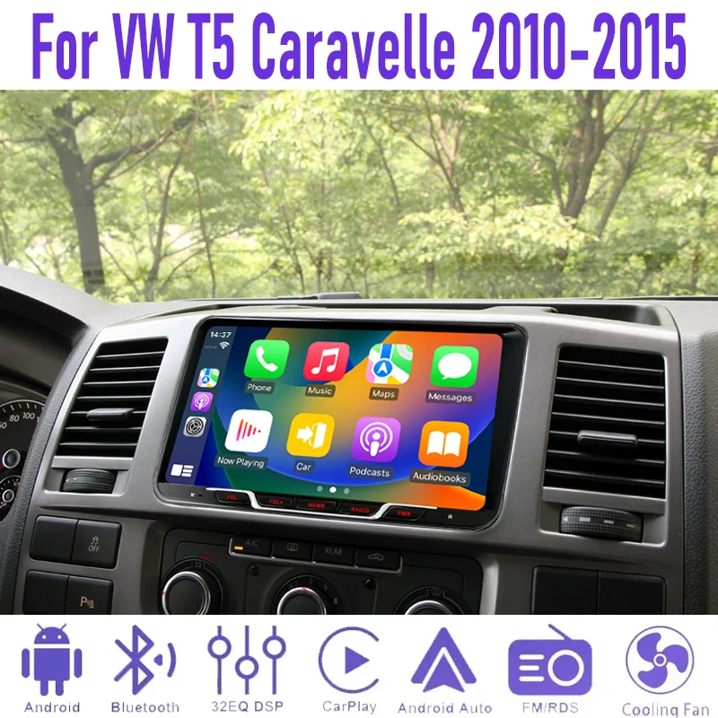 Radio GPS para coche de 9 pulgadas para VW T5 Caravelle 2010-2015 inalámbrico Apple Carplay Android Auto unidad principal estéreo sistema inteligente 4-64GB