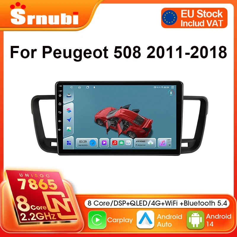 Radio para coche Srnubi Android14 UIS 7865 para Peugeot 508 2011-2018 SW CC, reproductor multimedia de navegación, Carplay, unidad principal Android Auto