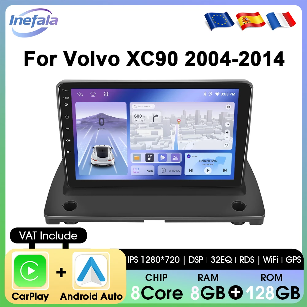 Radio Android Podofo 4G CarPlay para Volvo XC90 MK1 2002-2014, sistema inteligente para automóvil, unidad principal estéreo GPS 2din, reproductor multimedia.