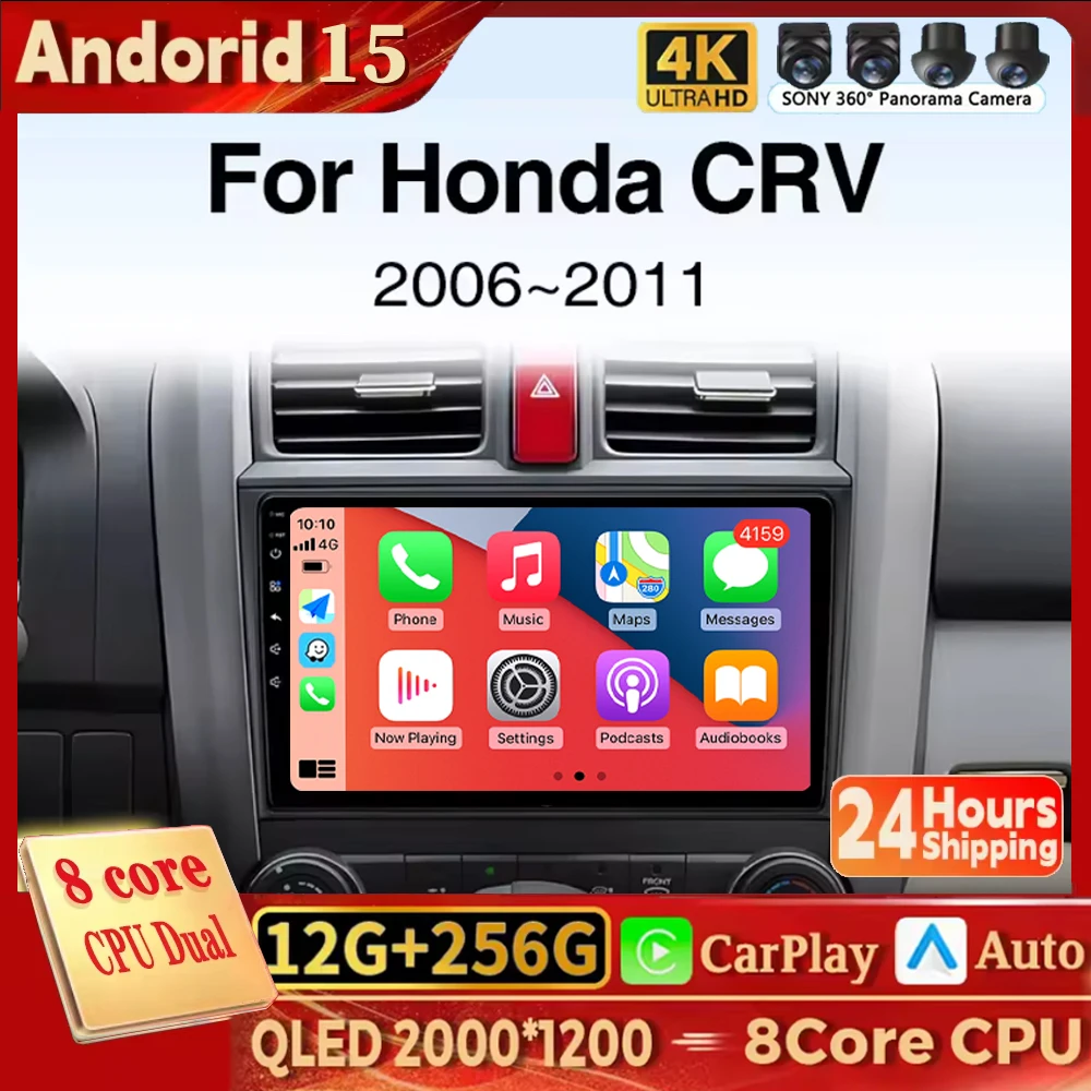 Para Honda CRV 3 RE 2007 2008 2009 2010 2011 Android 15 Radio de coche reproductor Multimedia Android Auto Carplay unidad principal navegación GPS