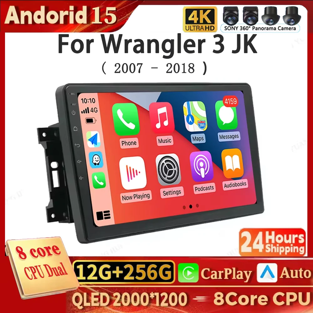 Radio de coche para Jeep Wrangler 3 JK 2007 - 2018 2 Din reproductor Multimedia estéreo Android navegación GPS Carplay Autoradio unidad principal