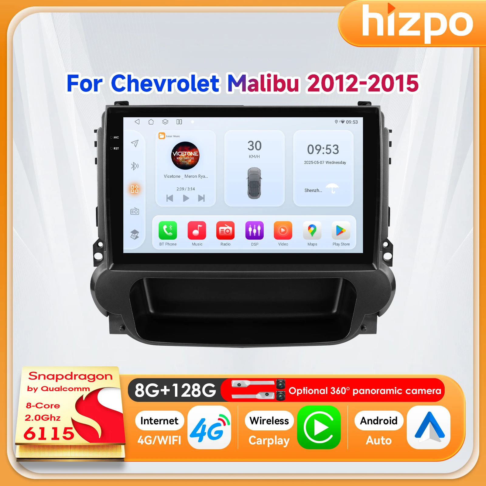 Radio de coche Hizpo con pantalla QLED de 9 pulgadas y navegación 2din para Chevrolet Malibu 2012 2013 2014 2015, autorradio, unidad principal estéreo, reproductor BT 4G