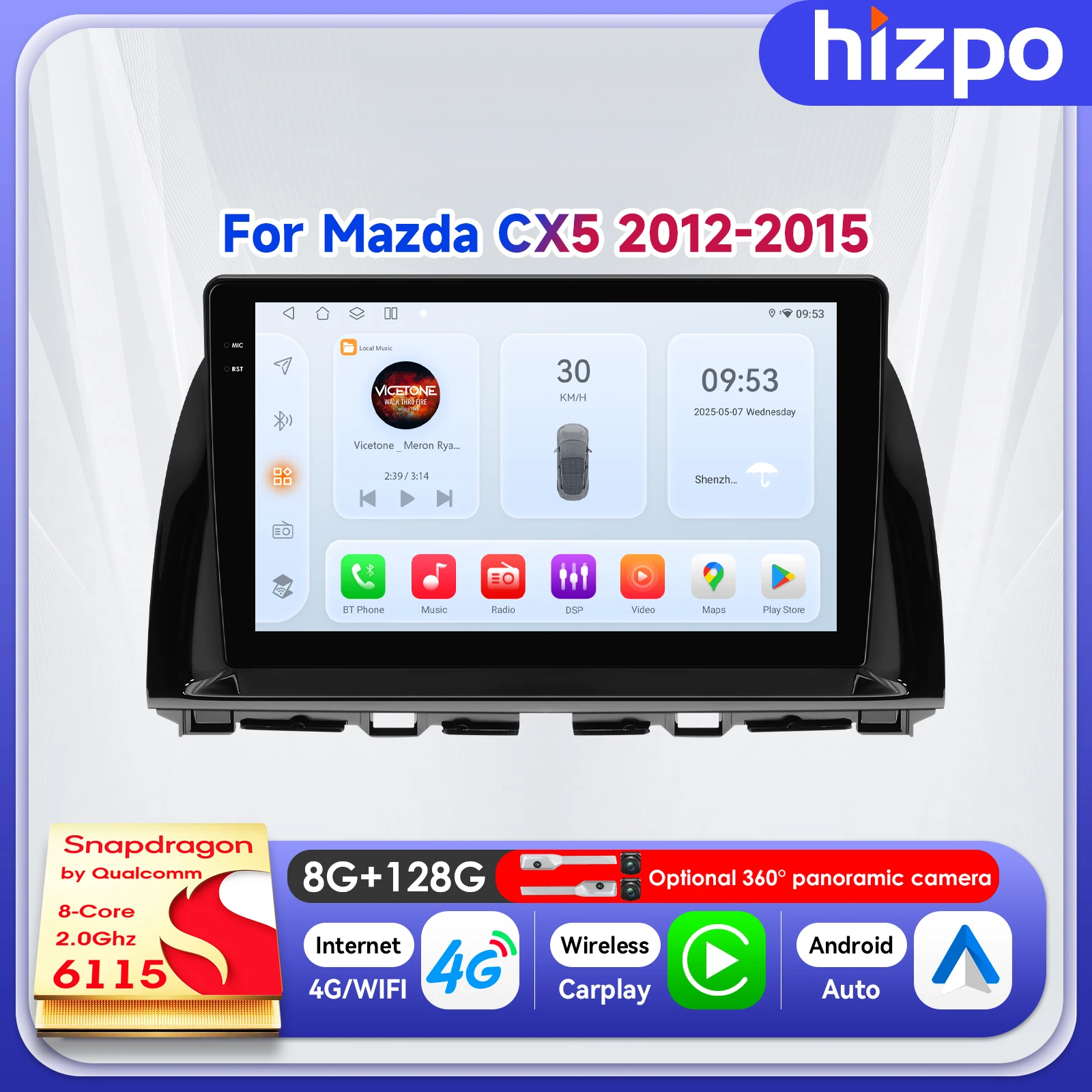 Radio de coche con pantalla táctil Hizpo de 10.1 pulgadas para Mazda CX-5 2012 2013 2014 2015, unidad principal con navegación 2Din, Android Carplay, SWC, 4G