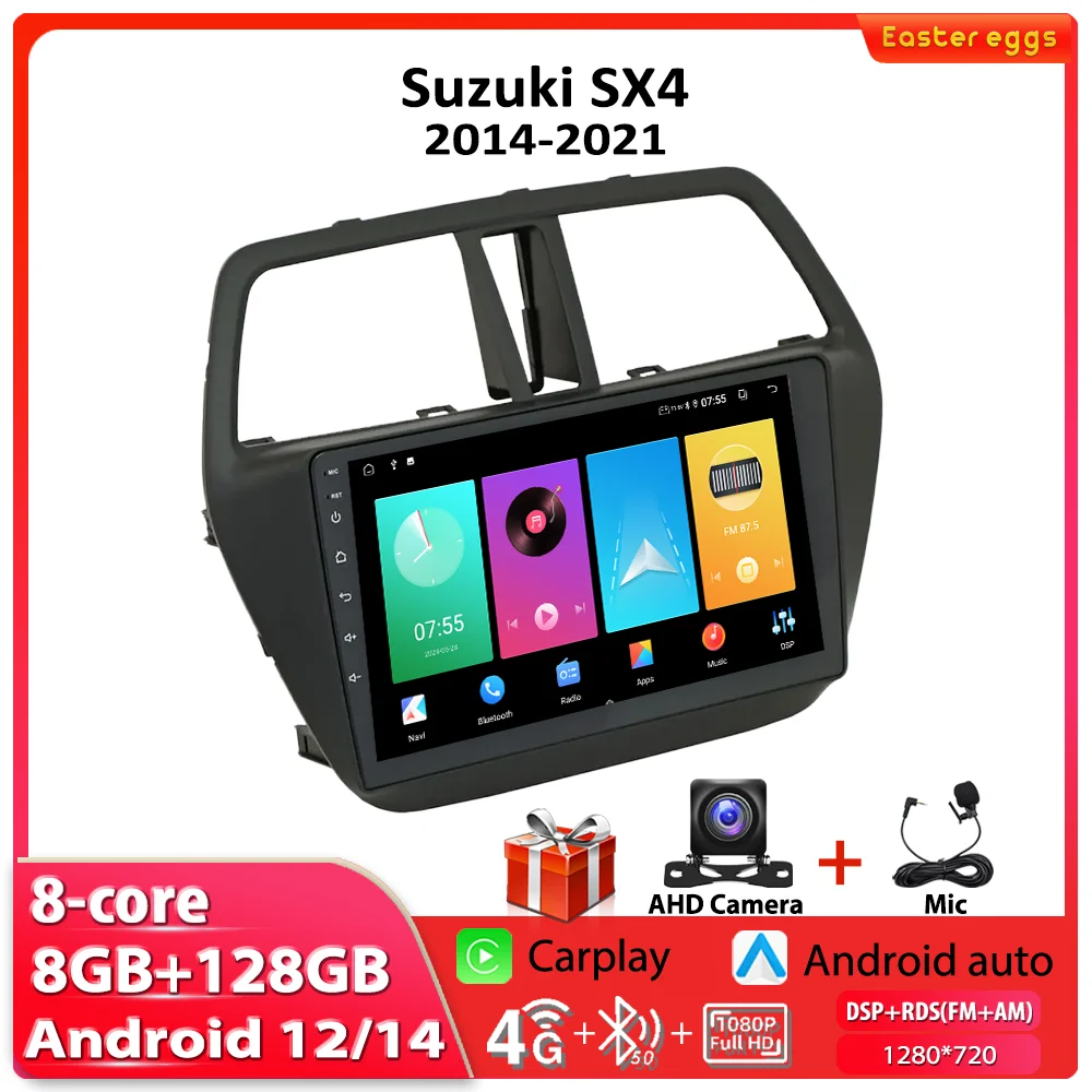 Autorradio estéreo para coche, reproductor Multimedia de vídeo, navegación GPS, DSP, Android 12, unidad principal, No 2DIN, para Suzuki SX4 s-cross 2014-2021