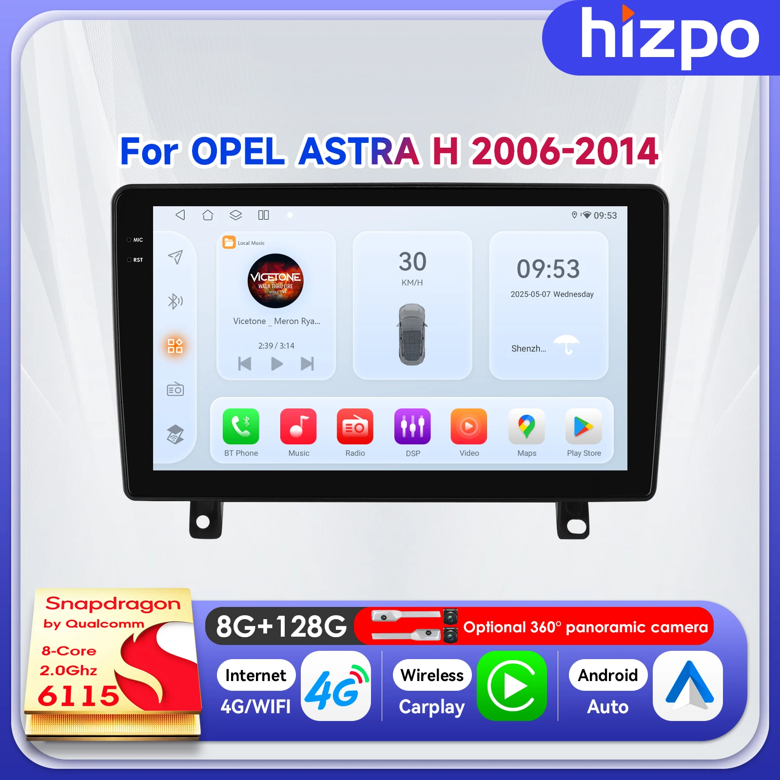 Radio Inteligente Hizpo de 9 Pulgadas y 2 DIN para OPEL ASTRA H 2006-2014, Sistema de Auto con 8 Núcleos, Unidad Principal con IA, Voz, Android 14, ADAS, SWC, 4G