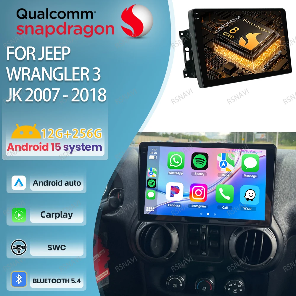 Radio de coche Android 15 para Jeep Wrangler 3 JK 2010 - 2018 unidad principal BT GPS inalámbrico Carplay Auto estéreo Viedo reproductor de navegación