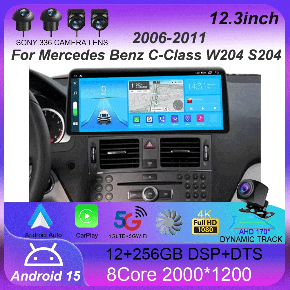 12,3 pulgadas para Mercedes Benz Clase C W204 S204 2006-2011 Android 15 reproductor de vídeo Multimedia estéreo para coche unidad principal Carplay Auto DSP