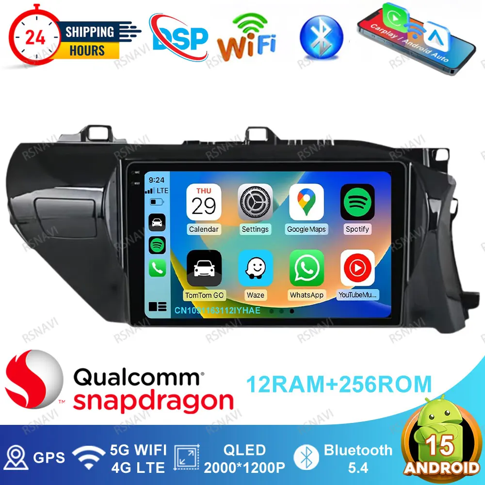 Radio de coche Android 15 para Toyota Hilux Pick Up AN120 2015 - 2023 RHD Golf 8 piezas de repuesto interiores caja de herramientas Clio 4 zapatos de hombre