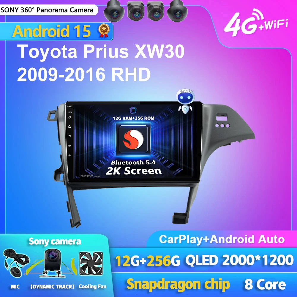 Android 15 Carplay DSP WIFI + 4G Radio de coche reproductor Multimedia para Toyota Prius XW30 2009-2016 RHD Autoradio estéreo 2din unidad principal