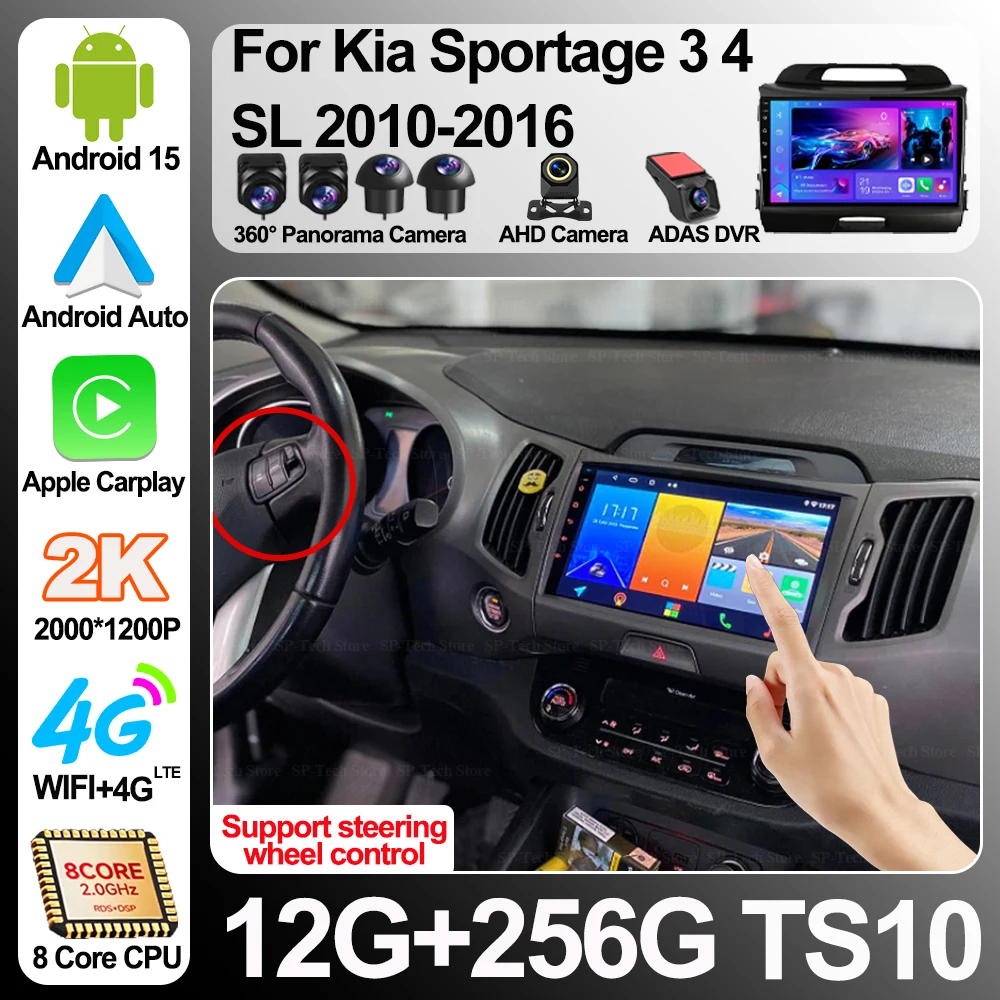 Android 15 para Kia Sportage 3 4 SL 2010-2016 Radio de coche reproductor de vídeo Multimedia GPS estéreo CarPlay 5G unidad principal pantalla táctil WiFi