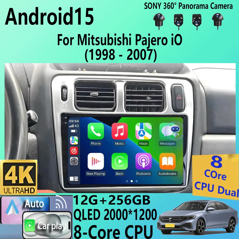 Android15 Carplay Auto WIFI + 4G Radio de coche para Mitsubishi Pajero iO 1998-2007 reproductor de vídeo Multimedia GPS estéreo 2din unidad principal