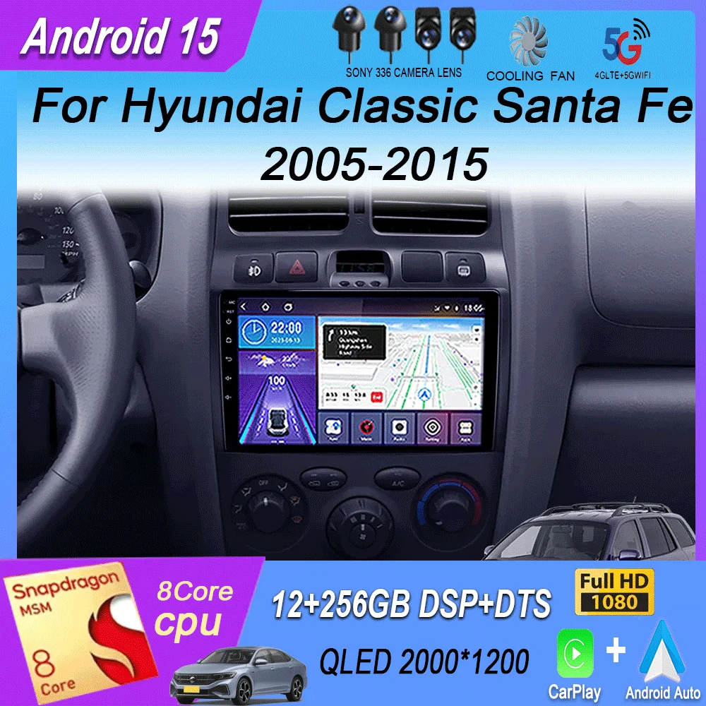 Android 15 Carplay Auto Radio del coche para Hyundai Classic Santa Fe 2005 2006-2015 GPS reproductor de vídeo Multimedia unidad principal 2Din estéreo