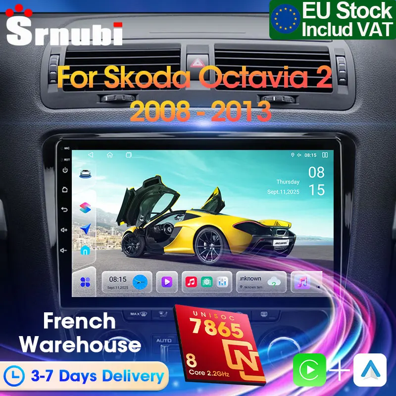Radio para coche Srnubi con Chip UIS7865, Carplay inalámbrico, Android 14 para SKODA Octavia 2 A5 2008-2013, unidad principal, Audio para coche, GPS, DVD, BT