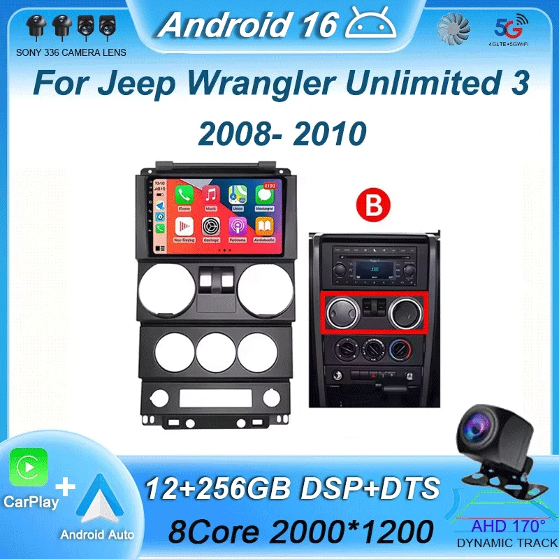 Radio Multimedia para Auto con Android 16, Reproductor de Video para Jeep Wrangler Unlimited 3 JK 2008-2010, Navegación GPS, Carplay, Unidad Principal