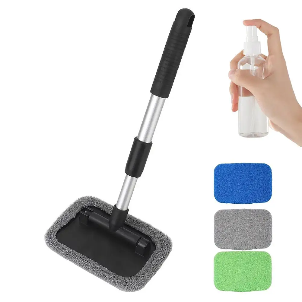 Kit de cepillo limpiador de ventanas de coche, herramienta de limpieza de parabrisas de microfibra, limpiaparabrisas de lavado de vidrio Interior de coche, almohadilla de tela reutilizable con mango largo