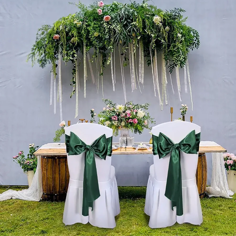 10/50 Uds. De fajas para sillas de satén para boda, cintas de lazos verdes de Navidad para banquete, fiesta, Baby Shower, silla para pasillo, decoración de cinta