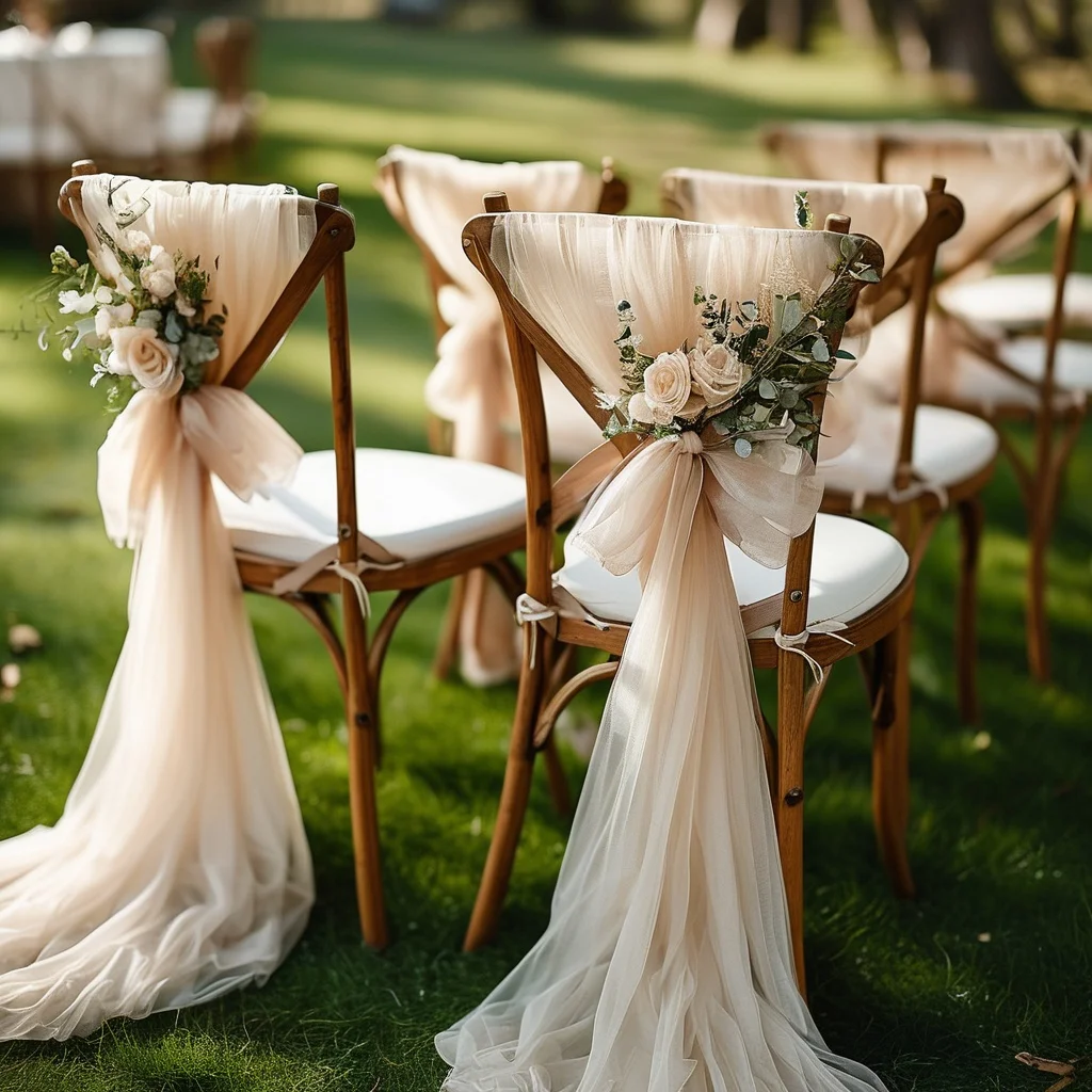 50 Uds. De fajas elegantes para sillas de boda color champán, tul semitransparente de 80x200cm para decoración de sillas de fiesta de boda, decoración de regalo