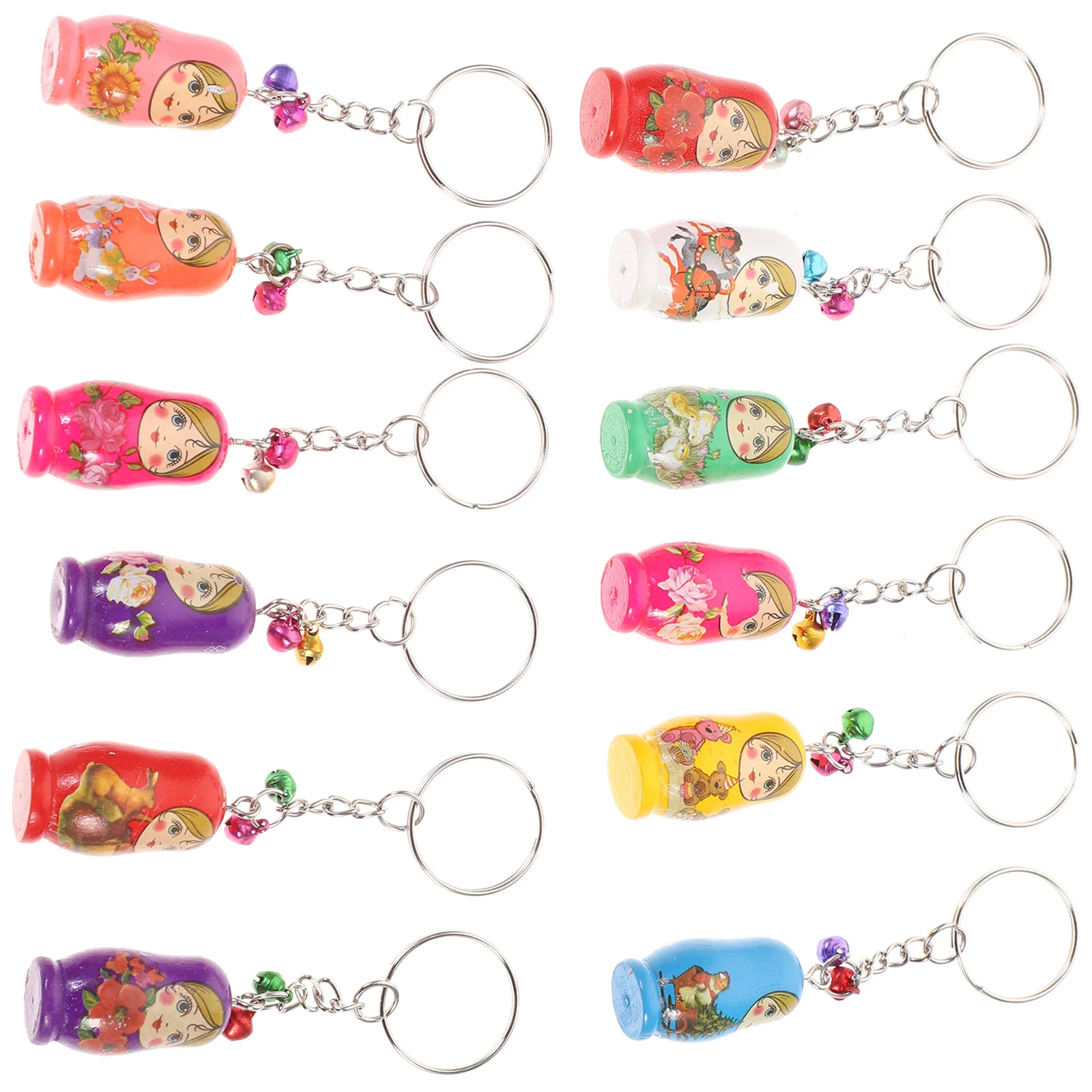12 Uds llaveros de madera llavero con diseño de Matryoshka rusa para decoración de llavero correa de teléfono móvil adorno creativo