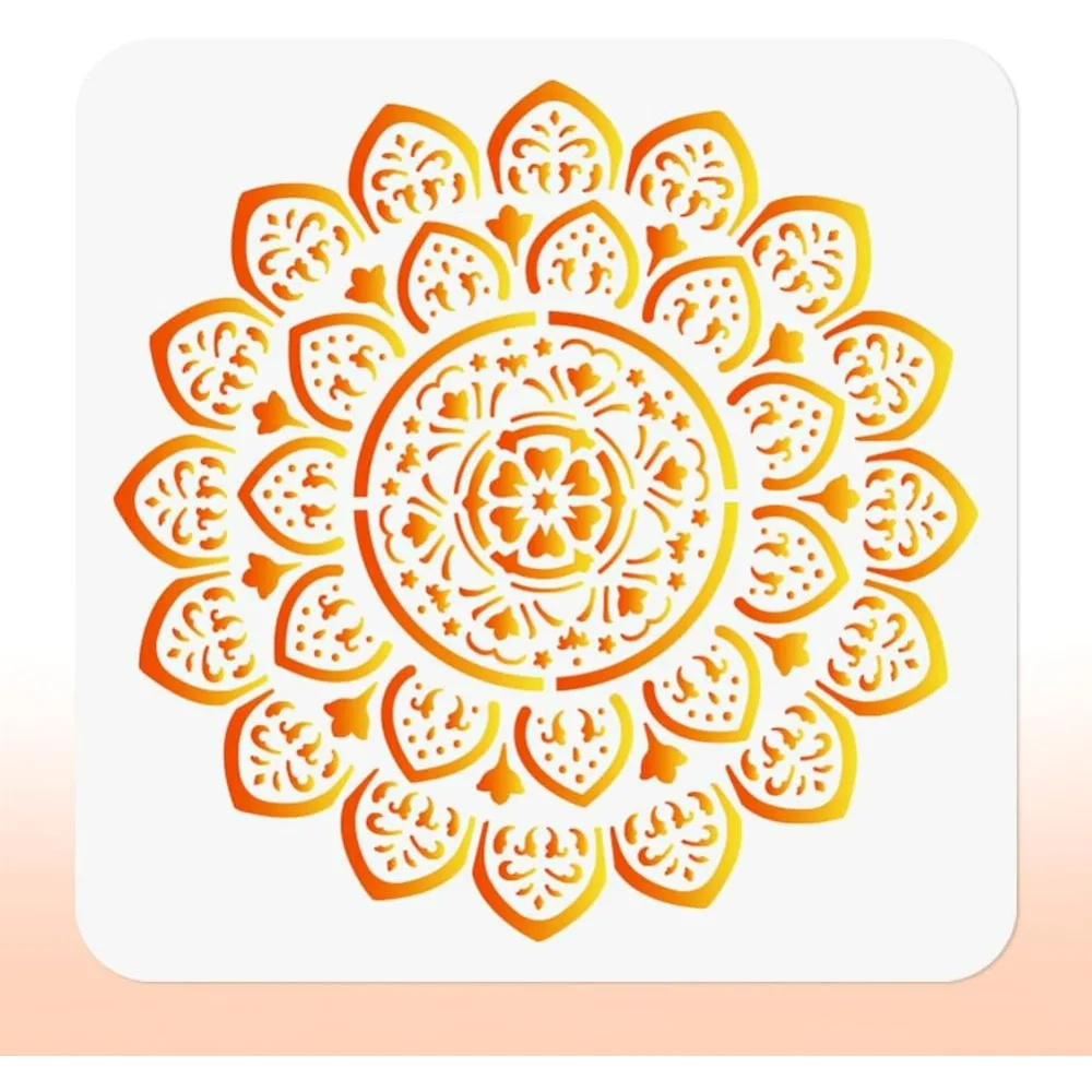 Plantilla de flor de Mandala para pintar, plantilla de 9,8 "x 9,8", pintura artesanal DIY, pared, decoración del hogar, tarjeta de quema de madera, diario, tela de lona