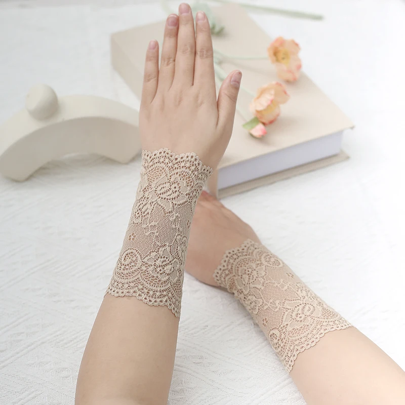Manoplas de protección solar sin dedos para mujer, manga de encaje Sexy, puño de brazo corto, cubierta elástica fina, cicatrices de muñeca, verano, conducción