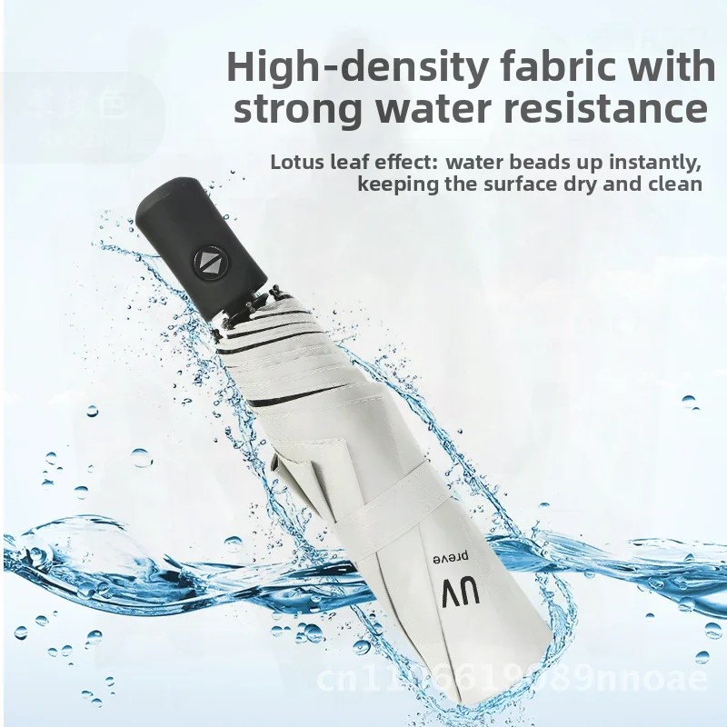 Paraguas de vinilo con protección solar, protección UV, totalmente automático, 70% de descuento, paraguas publicitario con doble logotipo, 8 varillas, marco de acero, mango EVA