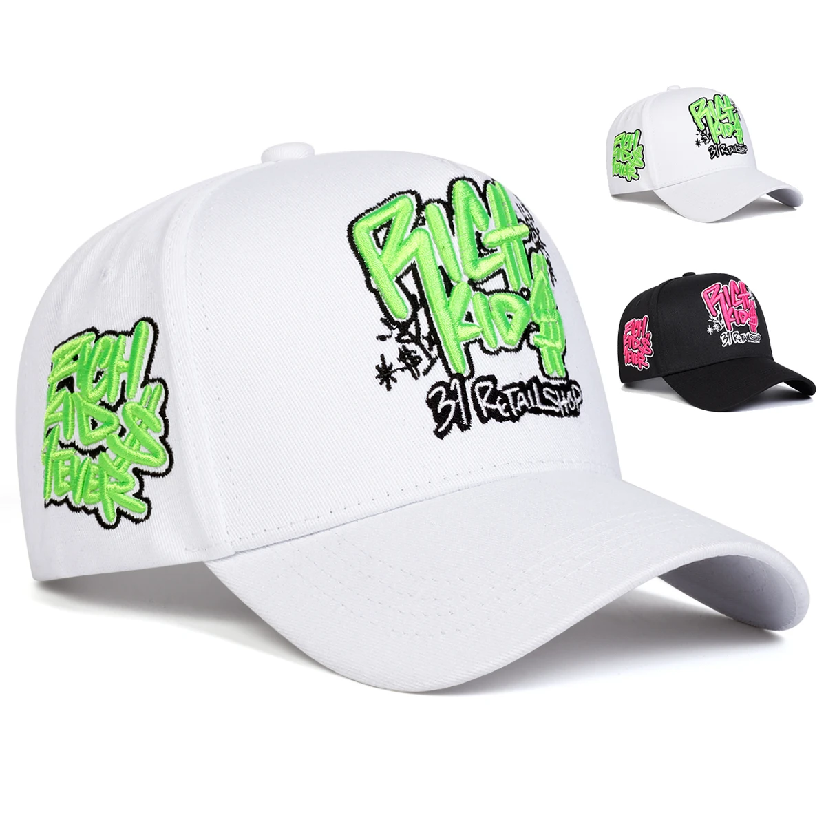 Gorras de béisbol unisex con bordado de letras RICH KIOS, sombreros casuales ajustables, sombrero protector solar para exteriores para primavera y otoño