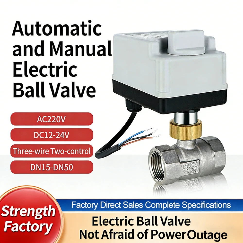 Válvula de Bola Eléctrica de Acero Inoxidable de 3 Hilos y 2 Vías, Control Manual y Automático, DC12-24V/AC220V, DN15~DN50