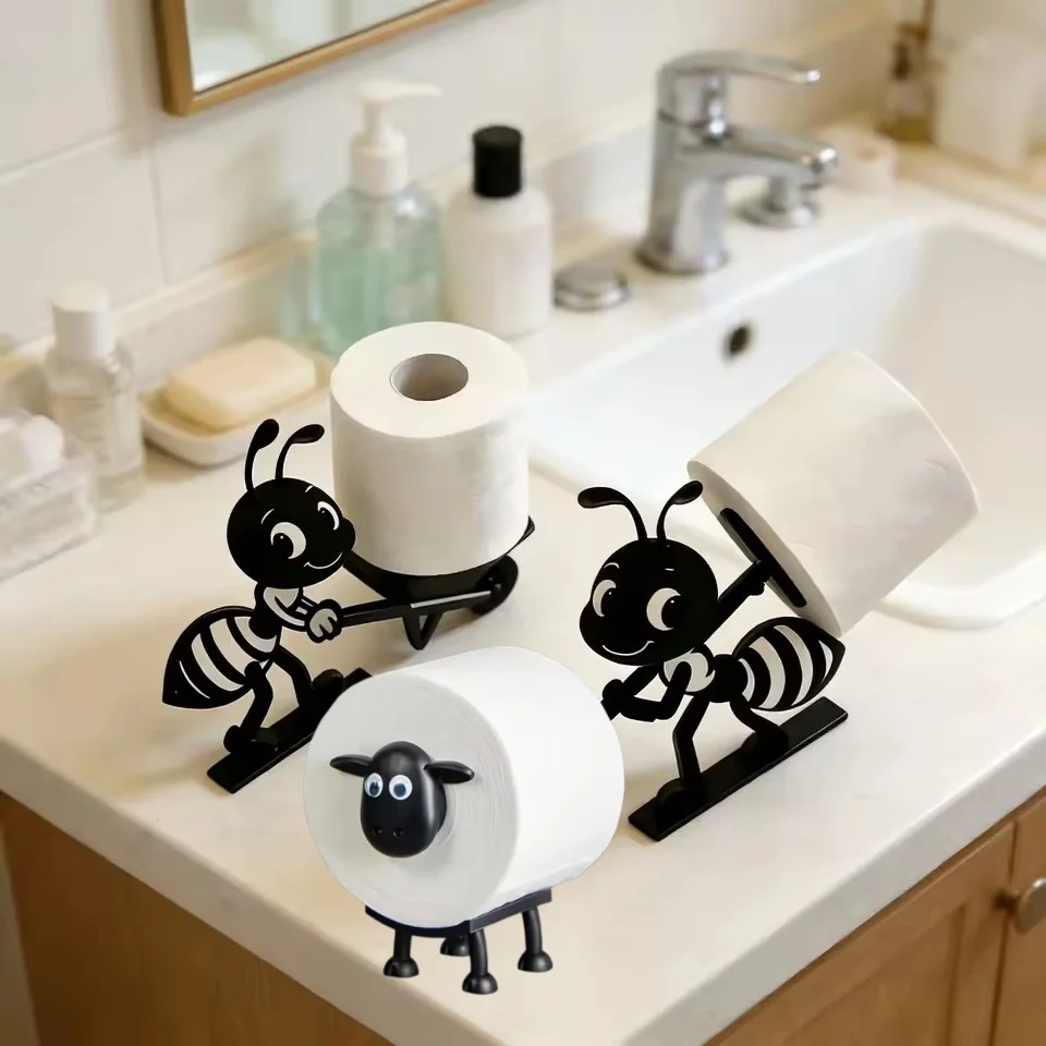 Portarrollos de Papel Higiénico con Forma de Oveja en Negro Mate, Dispensador de Servilletas Bonito para Baño, Cocina, Autocaravana y Decoración del Hogar
