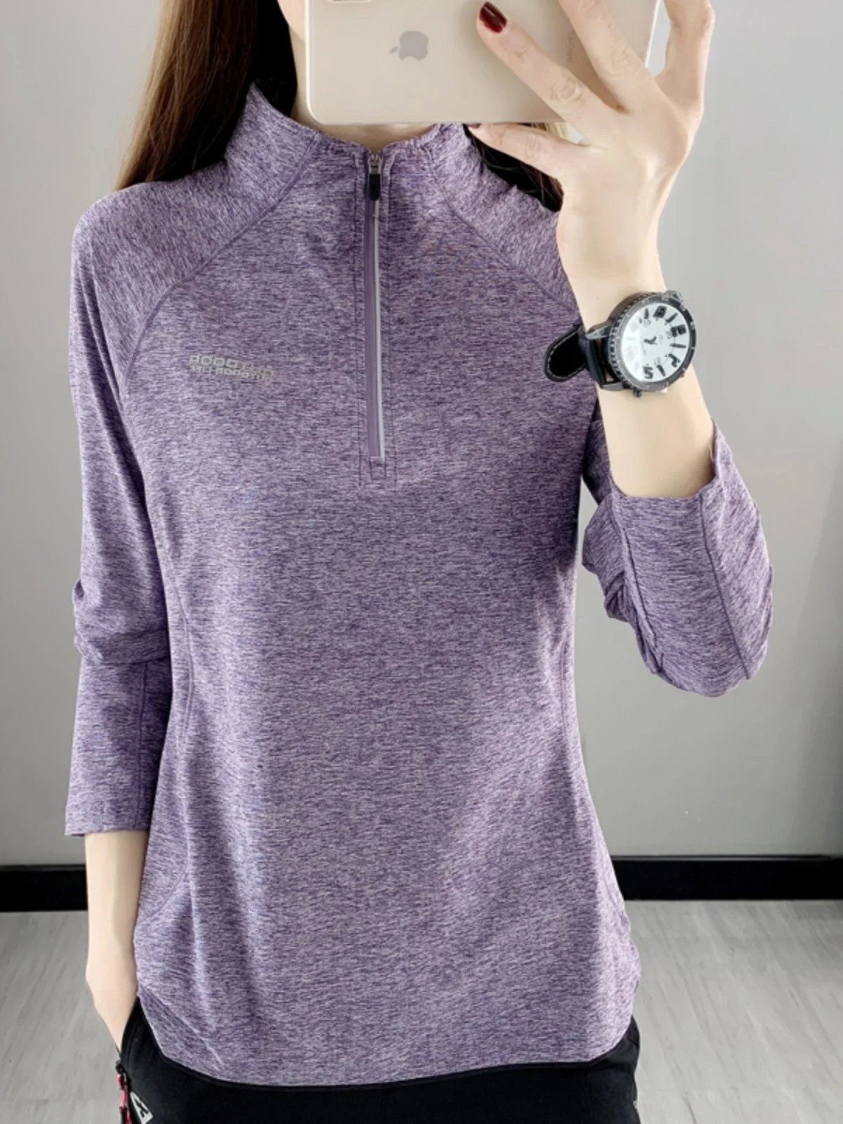 Cseta de Manga Larga de Secado Rápido para Mujer, Cuello Alto, Reflectante, Elástica, Transpirable, para Correr, Fitn, ...