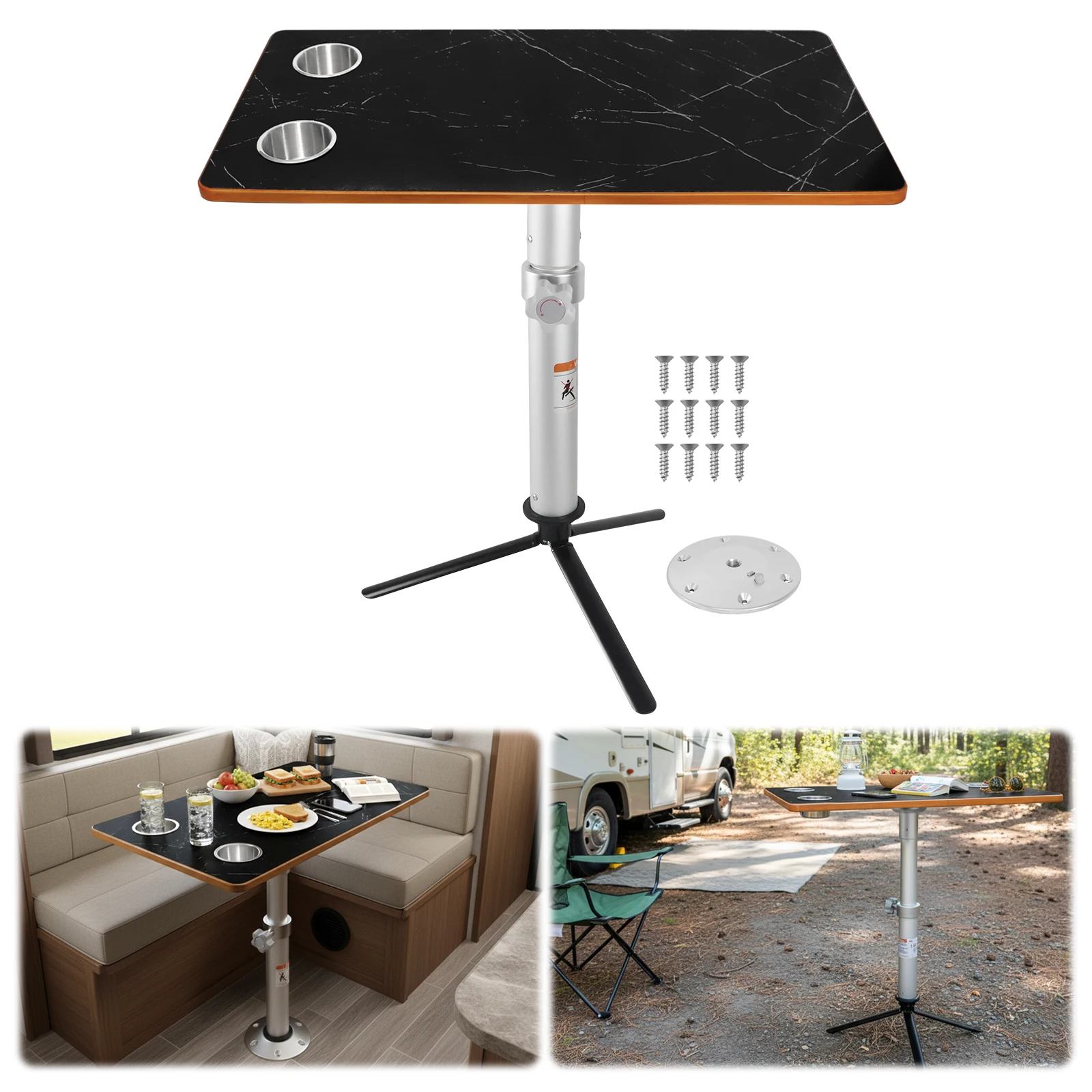 Kit de caravana/RV de mesa con efecto mármol negro de 80x40cm, con base de trípode para exteriores, para autocaravana, mesa marina/RV extraíble para barco