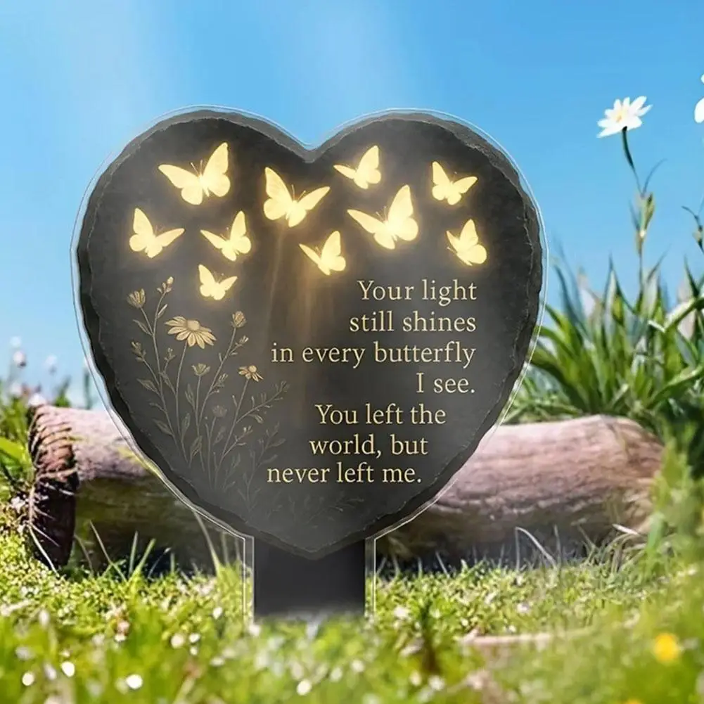Marcadores de tumba para humanos, decoraciones acrílicas 2D en forma de corazón, mariposa tallada y textura Floral, estaca de jardín conmemorativa para exteriores