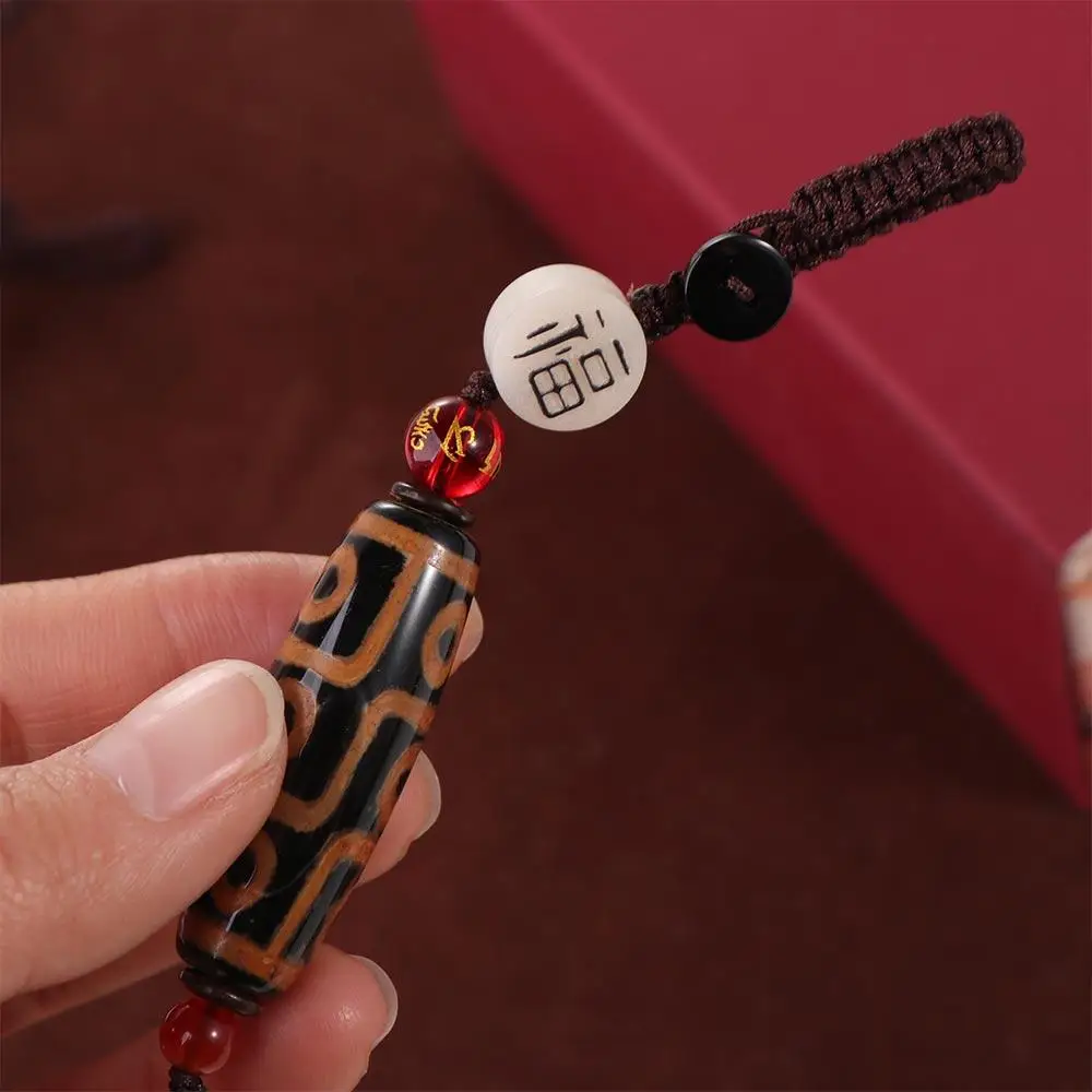 Fabricación de dijes, colgante de piedra de ágata, llavero con colgante de nueve ojos de Tíbet Dzi, llavero de cuentas de cielo del Tíbet, llavero de cuentas de cielo