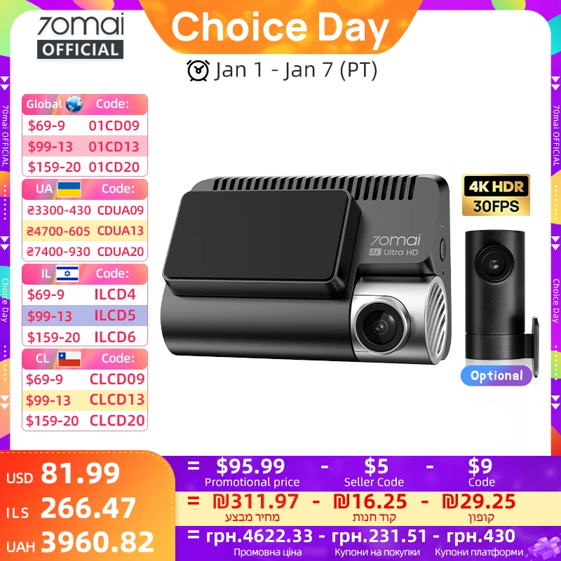 70mai A800SE Dash Cam 4K UHD Calidad de cine GPS incorporado ADAS 70mai 4K A800SE Soporte 24H Soporte de estacionamiento Cámara trasera