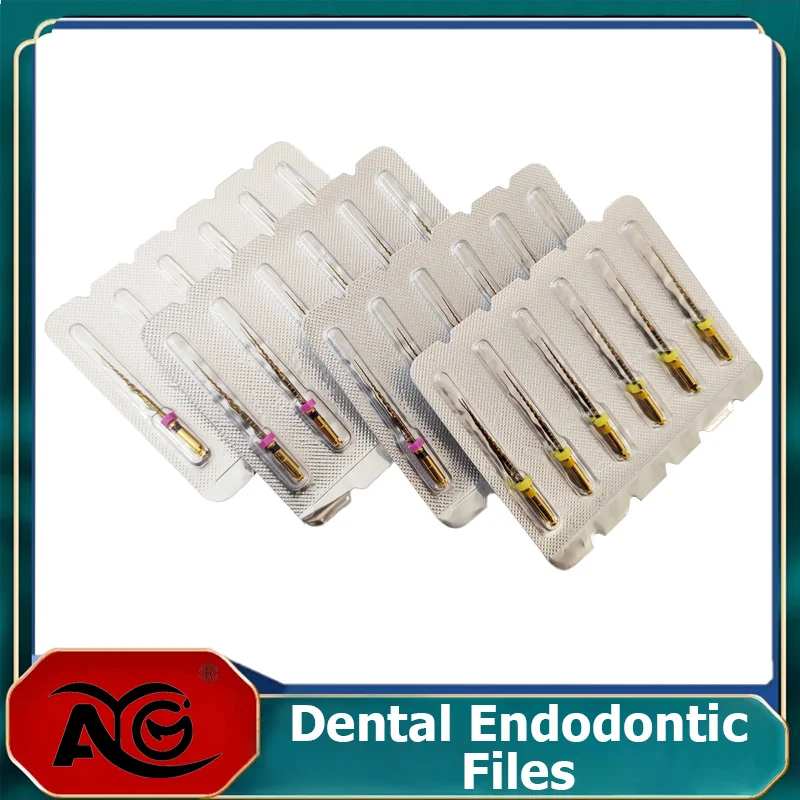 Paquete de 5 fichas de endodoncia para conducto radicular Dental AG, 21/25mm, archivo rotativo activado por calor dorado, materiales flexibles para dentista, herramientas de odontología