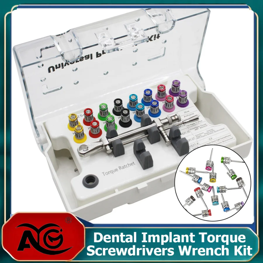 Destornillador de implante Dental AG, llave dinamométrica colorida, trinquete de 10-70NCM con destornillador de 16 Uds., Kit de herramientas de restauración Universal