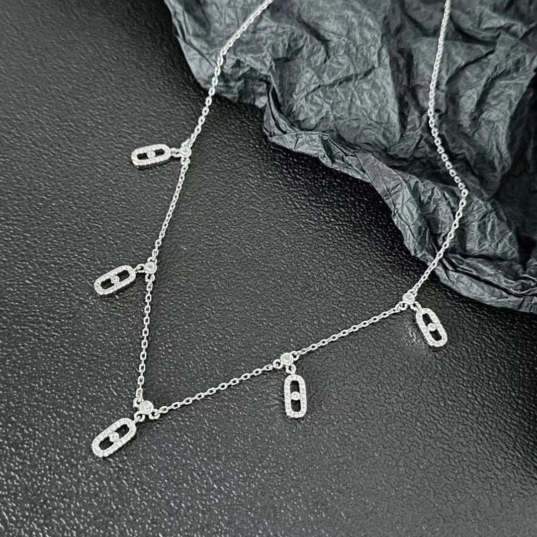 Collar de mujer con 5 colgantes de moda chapado en oro de plata de ley 925 con diamantes completos. Movimiento de diamantes.
