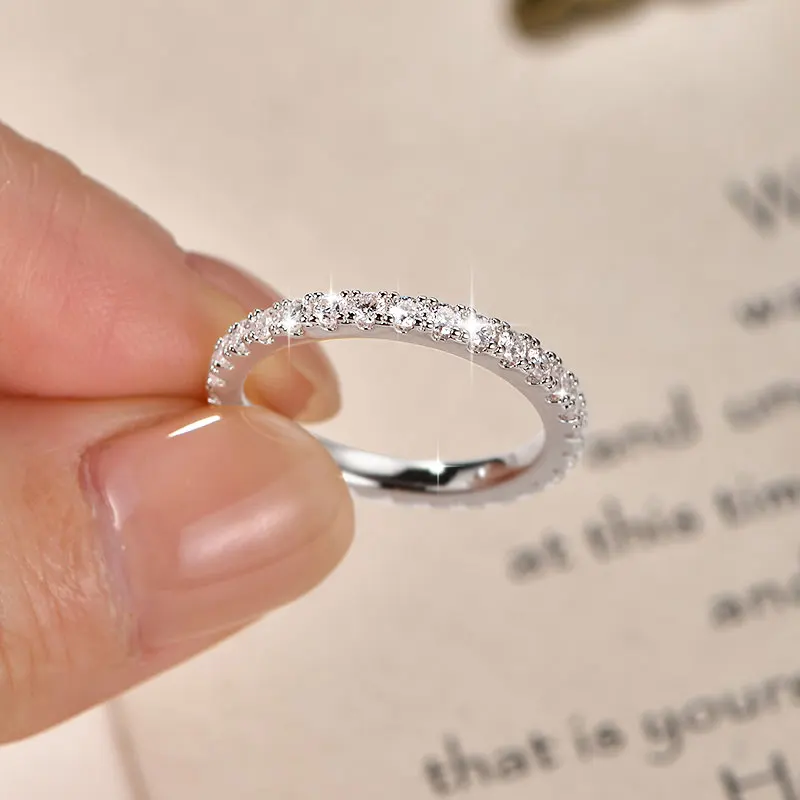 Anillo MODIAN de moissanita Simple eternidad, Plata de Ley 925, anillos de boda finos simples brillantes para mujer, regalo de joyería fina