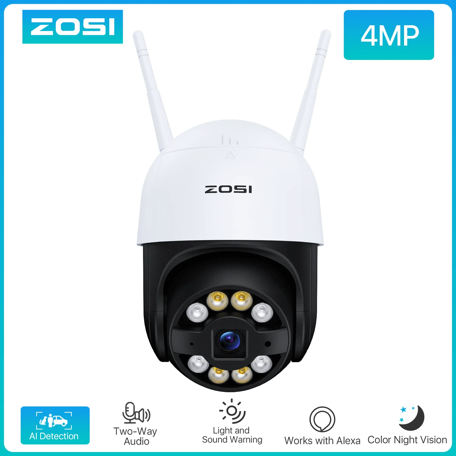 Cámara ZOSI Wifi PTZ 3MP/4MP Starlight visión nocturna vigilancia cámara IP exterior Audio bidireccional AI detección humana cámara inalámbrica