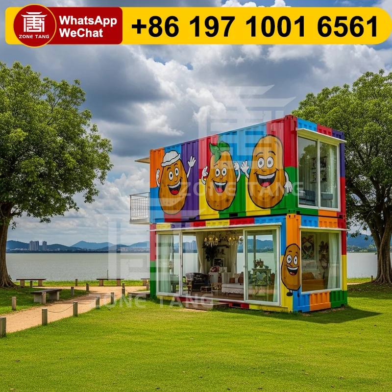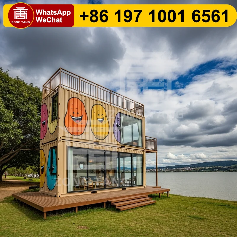 Casa Contenedor de 2 Pisos, Cabaña Modular Prefabricada, Casa Contenedor de 40 pies, Resistente a Terremotos, Sala de Reuniones Económica, Cumple con la Ley