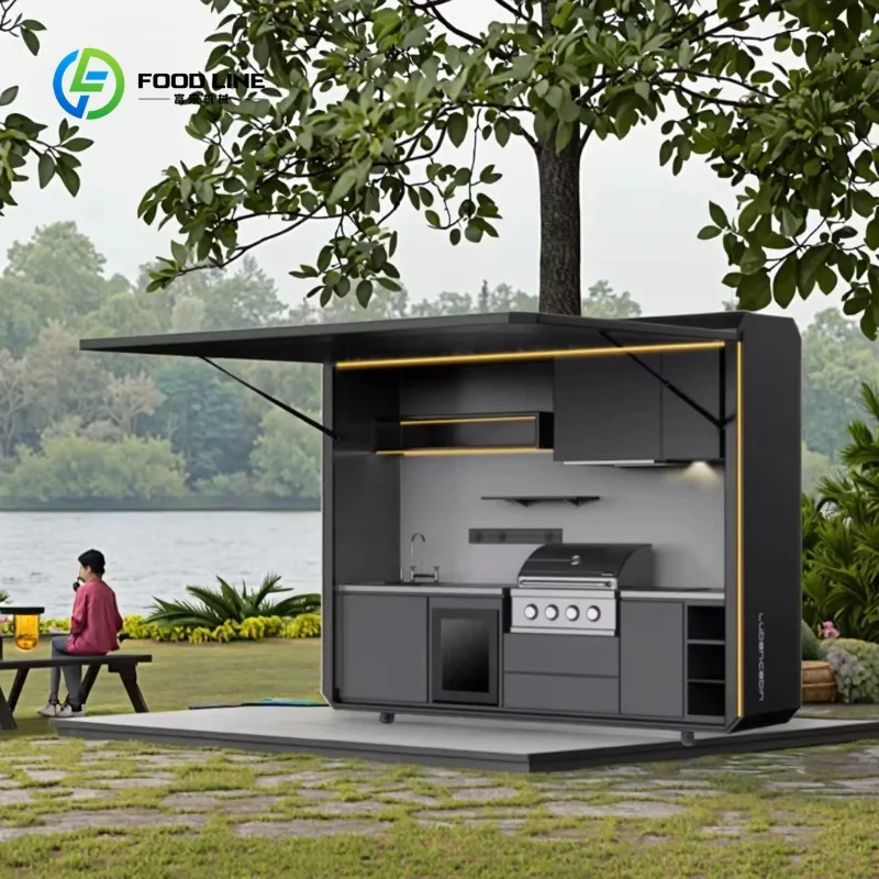 Casa Cápsula Personalizada, Cocina Exterior Comercial, Parrilla Negra de Calidad para Barbacoa, para Fiestas en el Jardín, Casa Prefabricada