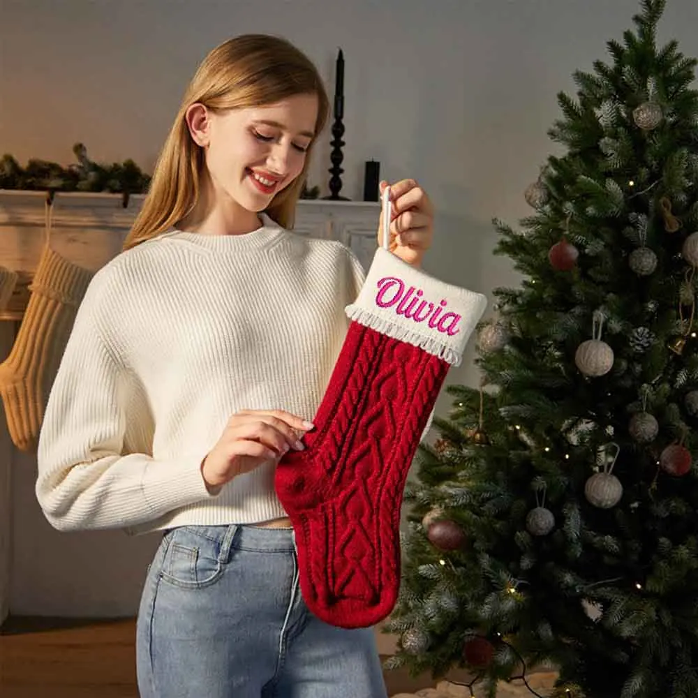 Medias navideñas personalizadas Calcetines de punto con cable rojo y verde Medias de regalo navideñas bordadas personalizadas con nombre Feliz Navidad